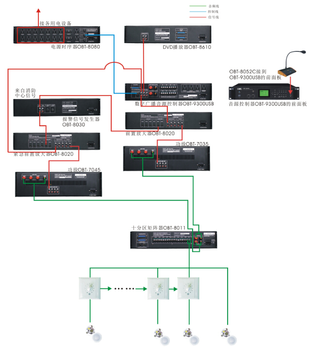 公共廣播系統(tǒng)分區(qū)按建筑消防分區(qū)要求將消防廣播分為多個消防廣播分區(qū),背景音樂廣播與消防應(yīng)急廣播的音源、功率放大器、揚(yáng)聲器等設(shè)備共用一套,功能分開使用,合用一個線路系統(tǒng),系統(tǒng)平時需要播放業(yè)務(wù)廣播時,可切斷背景音樂;發(fā)生火災(zāi)時,與大樓消防報警系統(tǒng)聯(lián)動,構(gòu)成緊急廣播系統(tǒng),實(shí)現(xiàn)火災(zāi)和緊急事故的廣播,實(shí)現(xiàn)資源共享,最大限度的節(jié)約資源,同時在第一時間避免人員傷亡和財產(chǎn)損失,保障廣場內(nèi)一切安全。